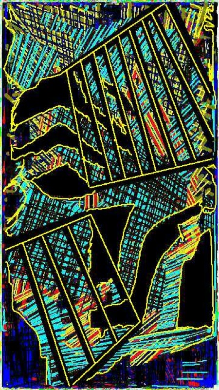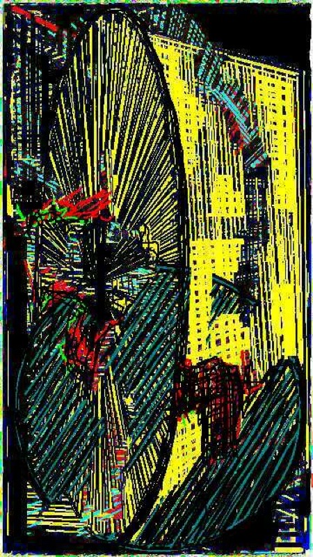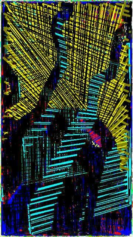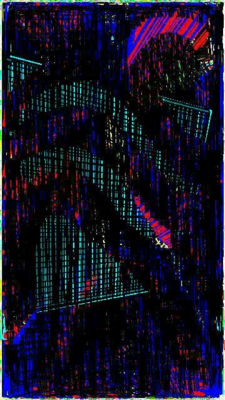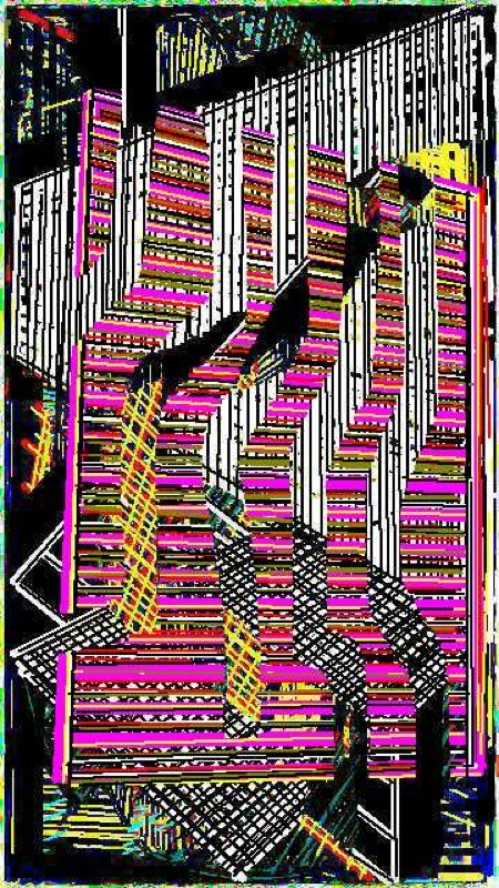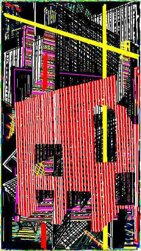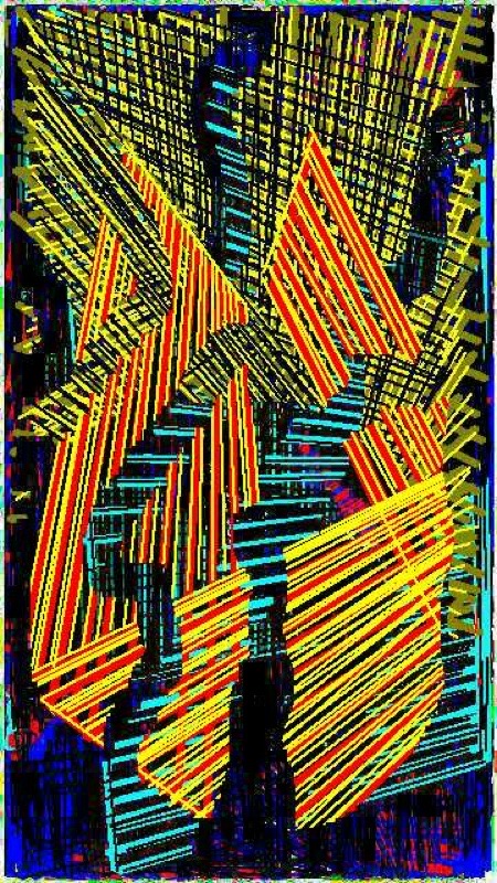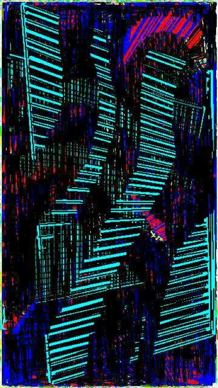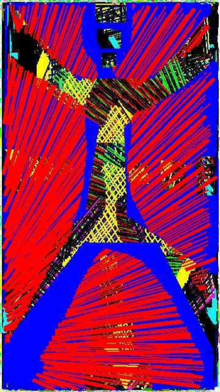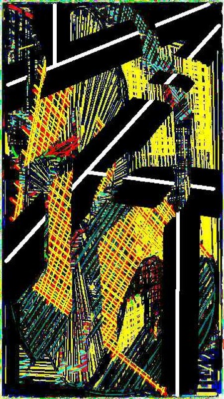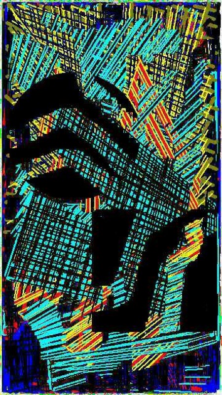 The work therefore not only consist of a data file that can be edited, skewed or altered, but also can reach from a quasi- miniature with 4×7 cm in its original format to an oversize format. The work has no fixed format or shape.