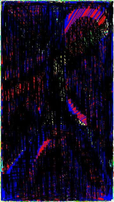 Das Werk entsteht somit als Datei und kann von der originalen Entstehungsgröße von als Quasi-Miniatur von 4×7 cm bis hin zu Großformaten editiert, verzerrt oder verändert werden. Das Werk hat keine feste Form.